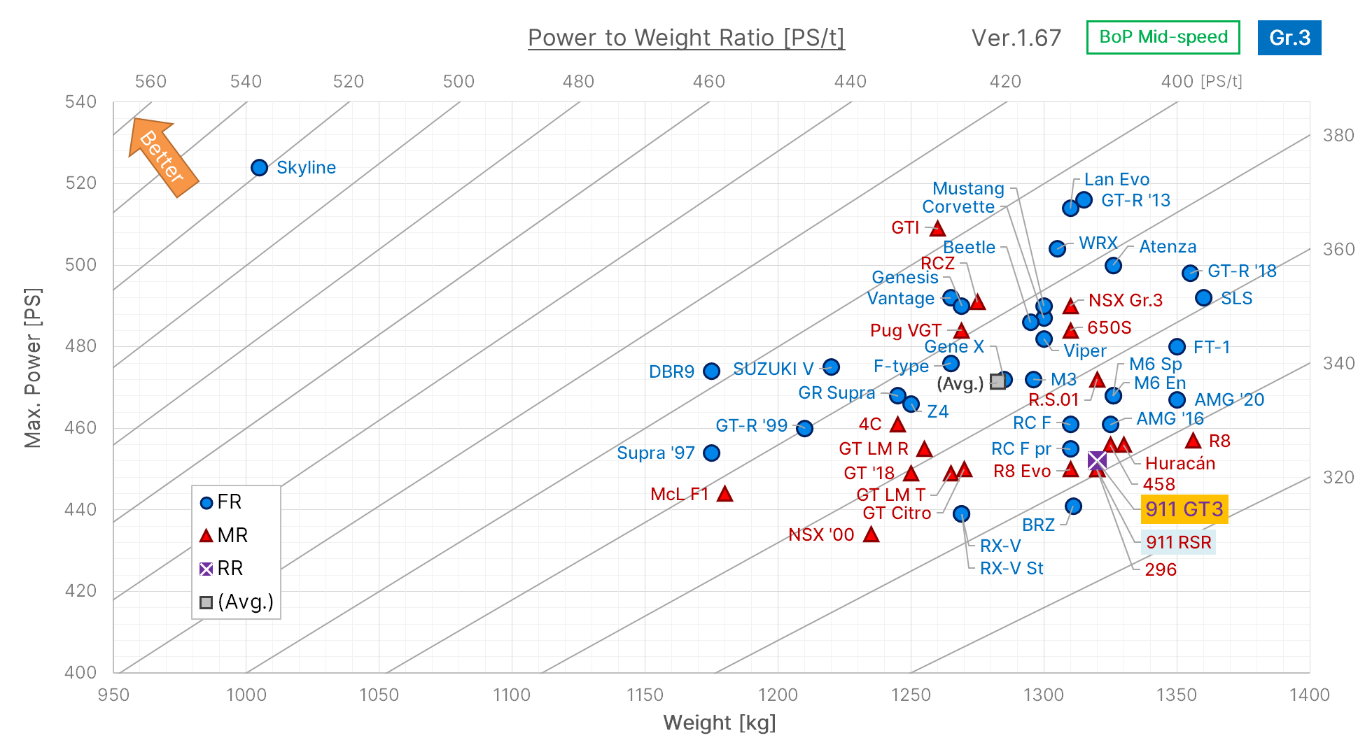 | 43 | 911 RSR | Porsche | MR | 691.63 | 691.63 | 0 | 450 | 450 | 0 | 43.3 | 43.3 | 0 | 1,310 | 1,310 | 0 | 2.911 | 2.911 | 0 | 343.5 | 343.5 | 0 | 444 | 444 | 0 | 313.2 | 313.2 | 0 | 2,888 | 2,888 | 0 | 6.505 | 6.505 | 0 | 0.154 | 0.154 | 0 | 331 | 331 | 0 | 424.6 | 424.6 | 0 | 1,310 | 1,310 | 0 | 3.958 | 3.958 | 0 | 252.7 | 252.7 | 0 | 46:54 | 46:54 | - | 12.62 | 12.62 | 0 | 22.11 | 22.11 | 0 | 2.86 | 2.86 | 0 | -0.28 | N | -0.28 | N | 0 | -1.00 | U | -1.00 | U | 0 | 1.30 | 1.30 | 0 | 1.45 | 1.45 | 0 | 1.71 | 1.71 | 0 | Porsche | 911 RSR (991) '17 |